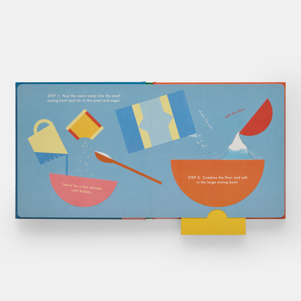 Invite young chefs into the kitchen with a mess-free introduction to cooking! Colorful, charming, and cleverly designed, this interactive board book guides future foodies through a recipe for pizza, demonstrating each step with tactile features such as flaps, tabs, and pop-outs.