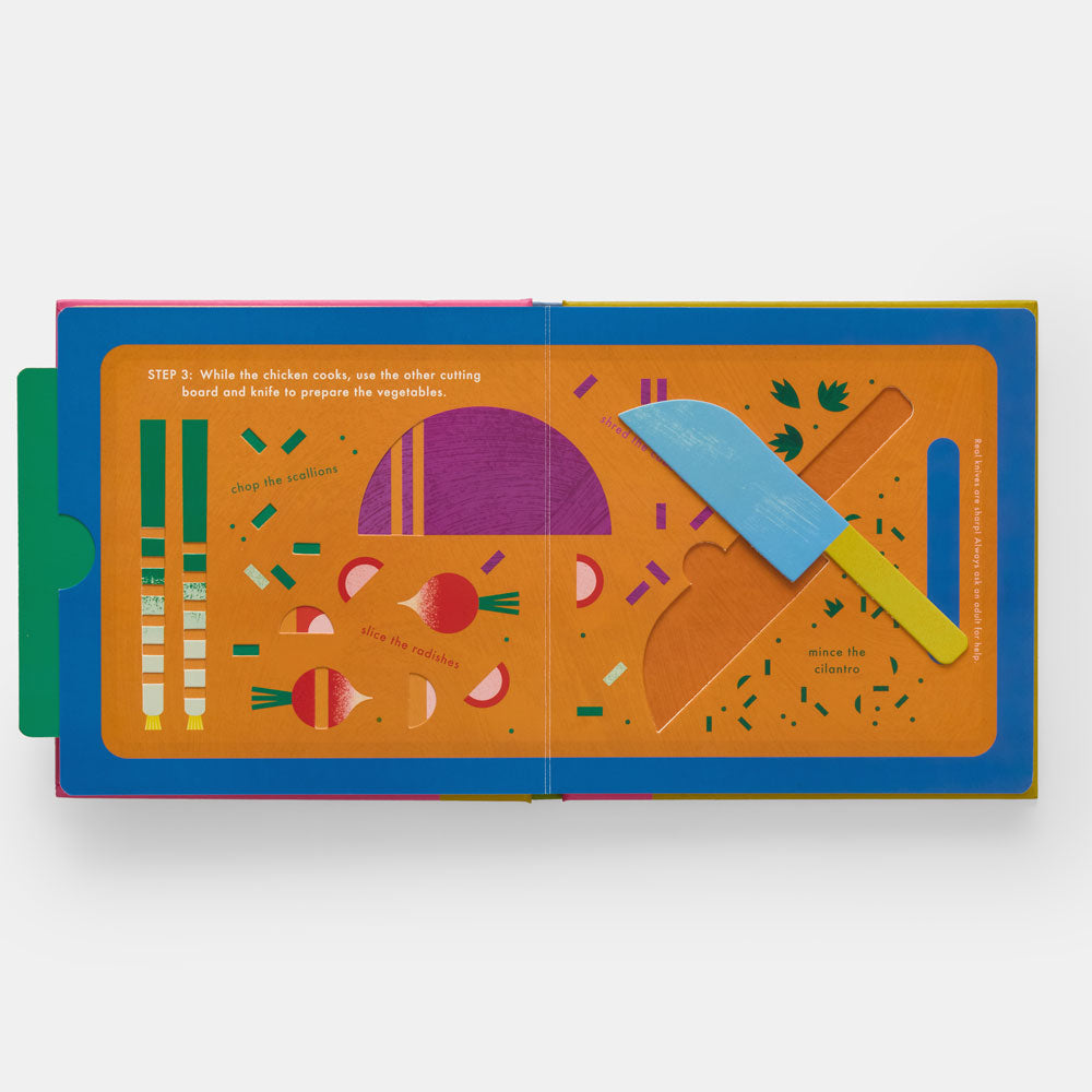 Invite young chefs into the kitchen with a mess-free introduction to cooking! Colorful, charming, and cleverly designed, this interactive board book guides future foodies through a recipe for tacos, demonstrating each step with tactile features such as flaps, tabs, and pop-outs.
